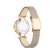 水面の波紋を思わせる、優しく丸みのあるベゼルとケースライン。雫に見立てたミルグレインをあしらった、ミルグレインドロップガラス。文字板には露のようにさりげなくレイアウトされたカットパーツ。透明感あふれる、美しく柔らかい表情が印象的なmizu collection。