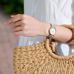 ・肌なじみが良く、トレンド感のあるミントグレーのバンドは、環境に配慮した合成皮革「エコペット(ECOPET)」を使用しています。