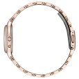 光を感じさせる柔らかいホワイトダイヤルに、煌めくパール調のデザインが手元を動かすたびに美しく輝きます。優美な印象のローマフォントもポイントです。4時と5時の間にあるTYO位置には煌めく光のマークが女性心をくすぐります。シチズンだけのサクラピンクが上品で美しい印象を引き立てます。