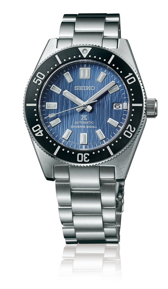 セイコーダイバーズの原点となる1965 ダイバーズをベースにしたモデルは、半世紀を超える歴史や培われてきた技術の積層を、長い時間をかけて形成された氷河と重ね合わせ、ディープブルーのダイヤルとソリッドなブラックのベゼルで表現しています。