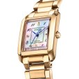 やや丸みをおびたスクエアケースと大胆にカットされたサファイアカーブガラス、白蝶貝の文字板がタイムレスでエレガントなデザインを表現したモデル。文字板にはアラビア数字のインデックスを採用。サファイアカーブガラスのカット位置を調節して映り込みを減らし、視認性が向上しました。