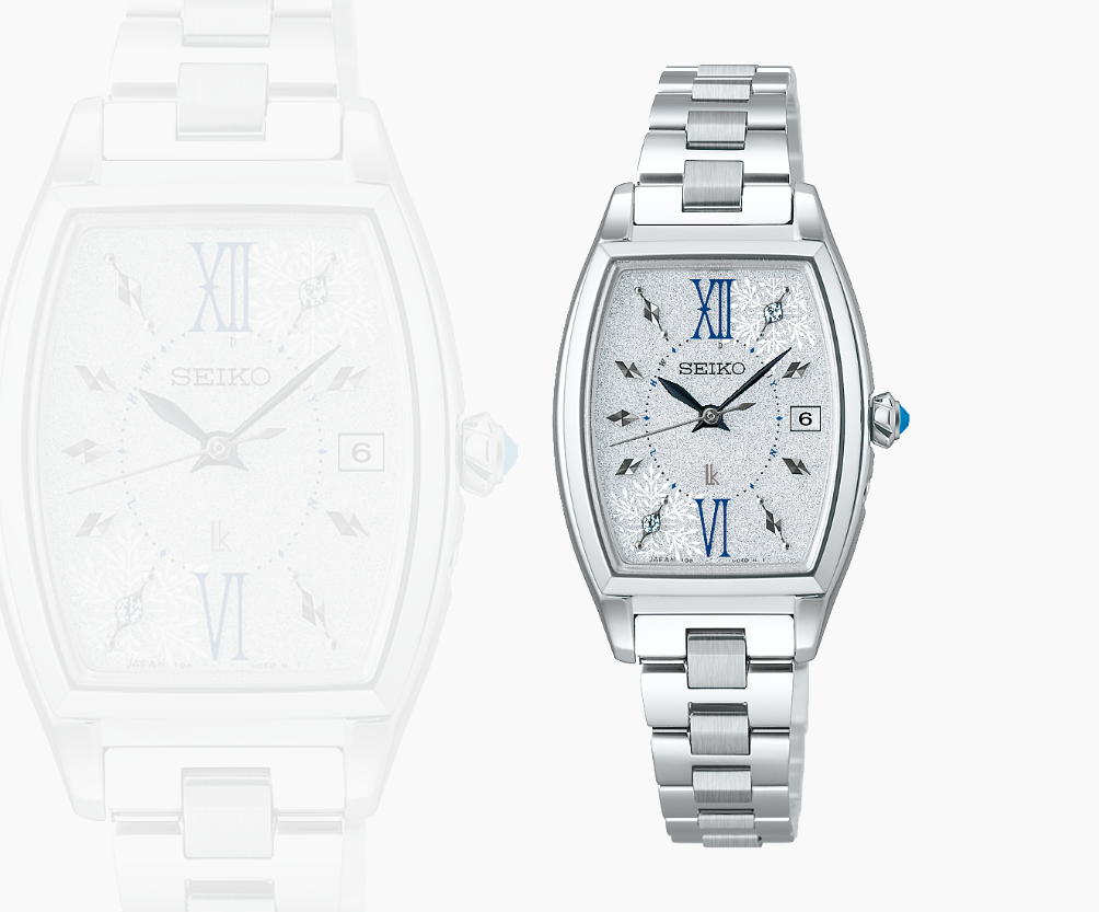 ・光に照らされて煌めく雪景色を思わせるフローズン加工のダイヤルに、雪の結晶をモチーフにした繊細なデザインをあしらったモデルです。