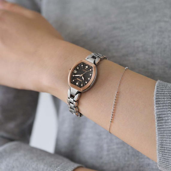 ライトシルバーとピンクゴールドのツートンカラーが魅せる、華やかな一本。