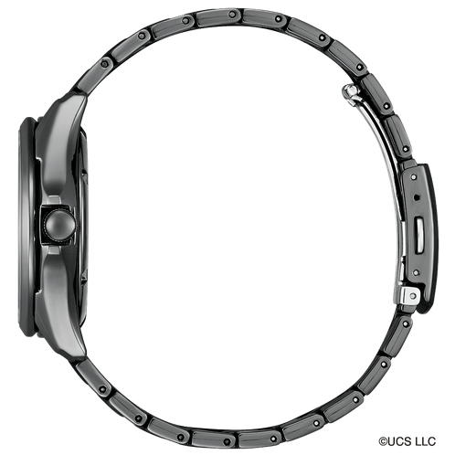 ・ダークグレーのケースとブルーの文字板を合わせたスタイリッシュな配色に、深いブルーの見返しリングが夜空のイメージをきわだたせます。