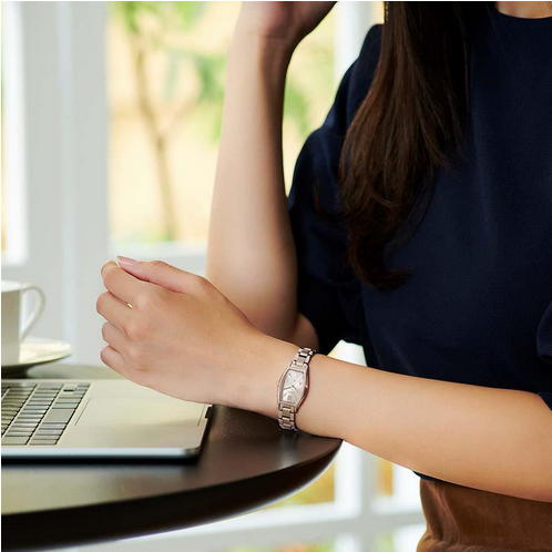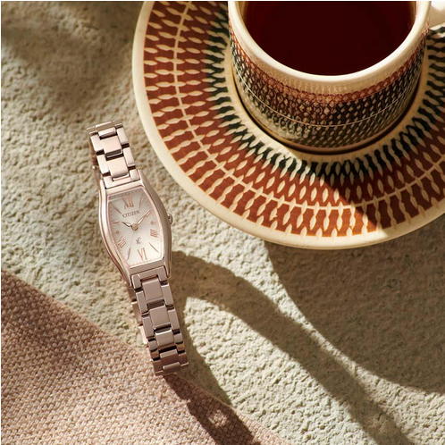 ・華やかなサクラカラーを纏った女性の腕元を知的に飾るエコ・ドライブモデルです。