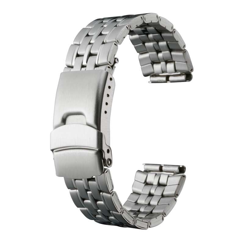・ ステンレススチール・ラップタイプ・ダブルロック式ワンタッチ中留・部分鏡面仕上げ。