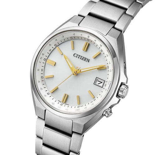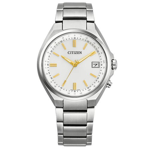 ・ケースとバンドにスーパーチタニウム(TM)を採用した、ベーシックな3針タイプのエコ・ドライブ電波時計。手首が細めの方にもフィットしやすい37.5mmケースです。