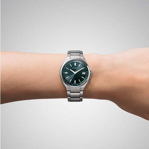 ・ケースとバンドにスーパーチタニウム(TM)を採用した、ベーシックな3針タイプのエコ・ドライブ電波時計。手首が細めの方にもフィットしやすい37.5mmケースです。