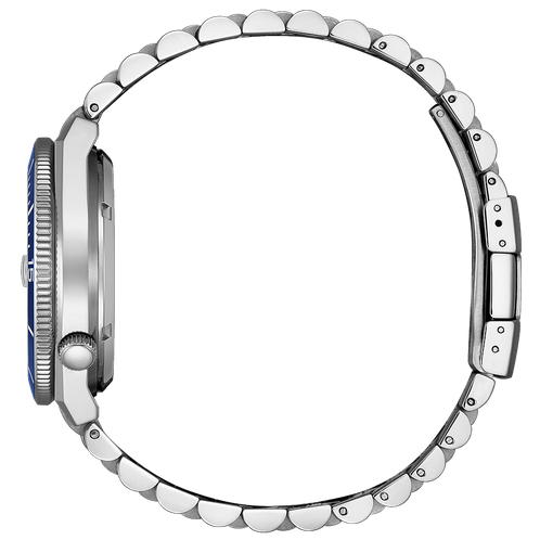 ・シースルーバックの裏ぶたで、機械式時計ならではの回転する錘(おもり)やメカの動きも楽しめます。アクティブなシーンでも活躍する10気圧防水仕様もポイント。