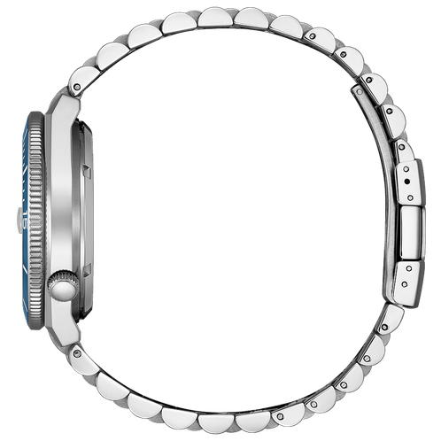 ・シースルーバックの裏ぶたで、機械式時計ならではの回転する錘(おもり)やメカの動きも楽しめます。アクティブなシーンでも活躍する10気圧防水仕様もポイント。