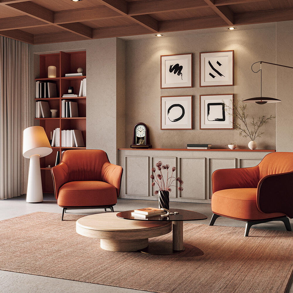 ・重厚感がありつつも、柔らかな曲線が温かみを添え、空間に落ち着きと上質さをもたらします。