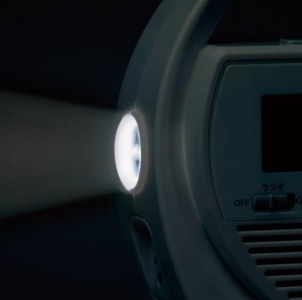 非常時に備え、いつもそばにおいて置きたい。内蔵充電池から、スマートフォン/携帯電話への充電ができる。手回し充電つき防災クロック。